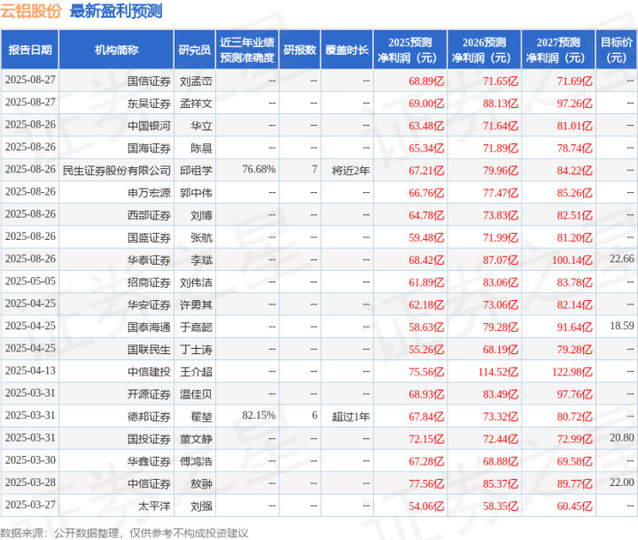 开源证券股份有限公司孙二春,温佳贝近期对云铝股份进行研究并发布了研究报告《公司信息更新报告:吨铝利润走扩推动业绩增长,持续提高分红增强信心》,给予云铝股份买入评级。